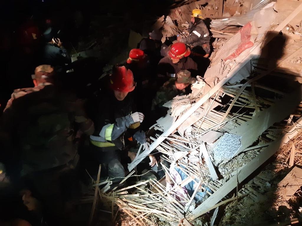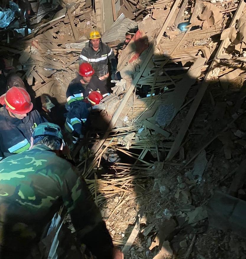 Dərhal əraziyə cəlb olunmuş Fövqəladə Hallar Nazirliyinin müvafiq qüvvələri tərəfindən bu saat qədər dağıntılar altından xəsarət almış 17 nəfər və 7 nəfərin cəsədi çıxarılıb.