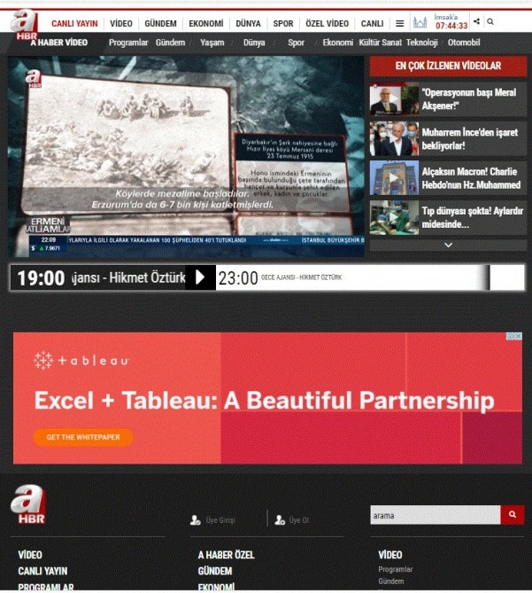 Türkiyənin “A Haber” telekanalı “Ermənilərin törətdikləri qətliamlar” sərlövhəsi ilə xüsusi veriliş yayımlayıb.