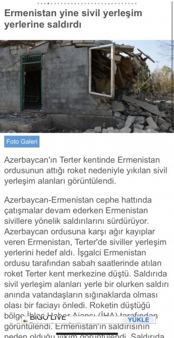 Türkiyə KİV-ləri Ermənistanın elan olunan atəşkəsə məhəl qoymadan Azərbaycanın cəbhə bölgəsindən uzaqda yerləşən mülki yaşayış yerlərini növbəti dəfə hədəf almasına kəskin reaksiya verib.