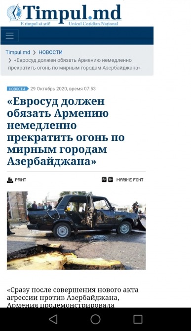Moldovanın aparıcı KİV-ləri Ermənistan silahlı qüvvələrinin Azərbaycanın Bərdə şəhərini raket atəşinə tutması barədə məqalələr yayıb.