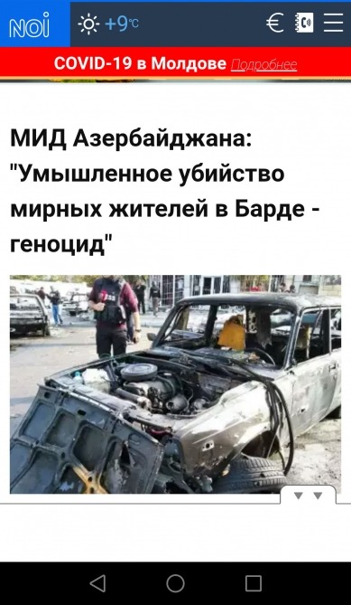 Moldovanın nüfuzlu "Timpul.MD", "Tribuna”, "NOİ.MD", "İPN.MD" informasiya portalları Bərdə şəhərinə edilən raket hücumu nəticəsində 20-dən çox mülki vətəndaşın həlak olduğu qeyd edilir.