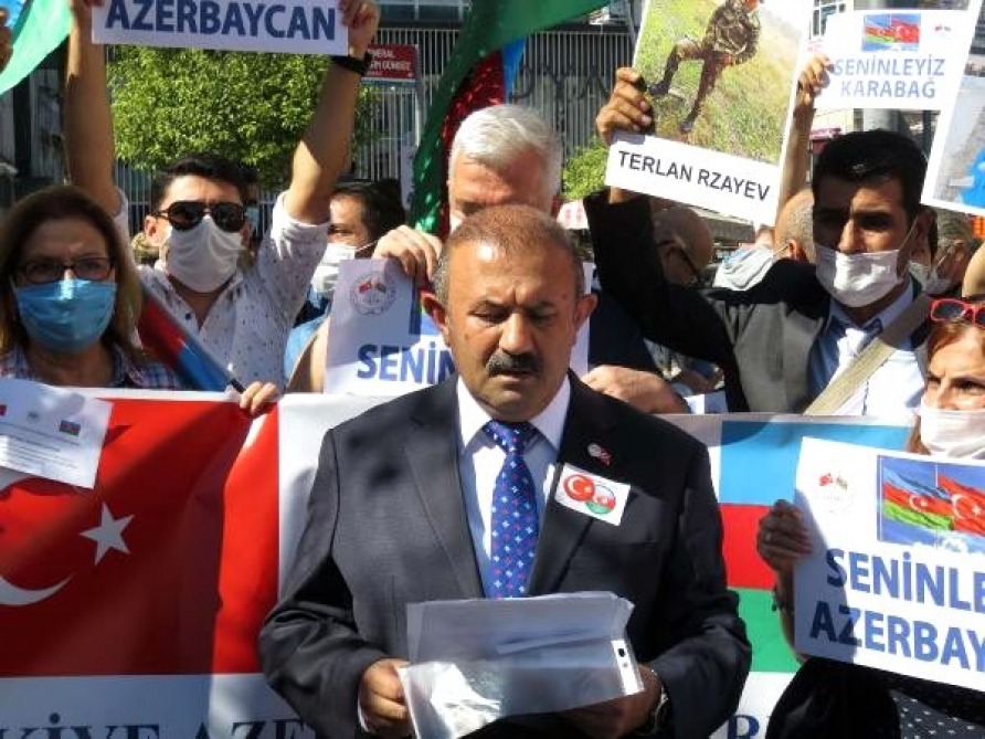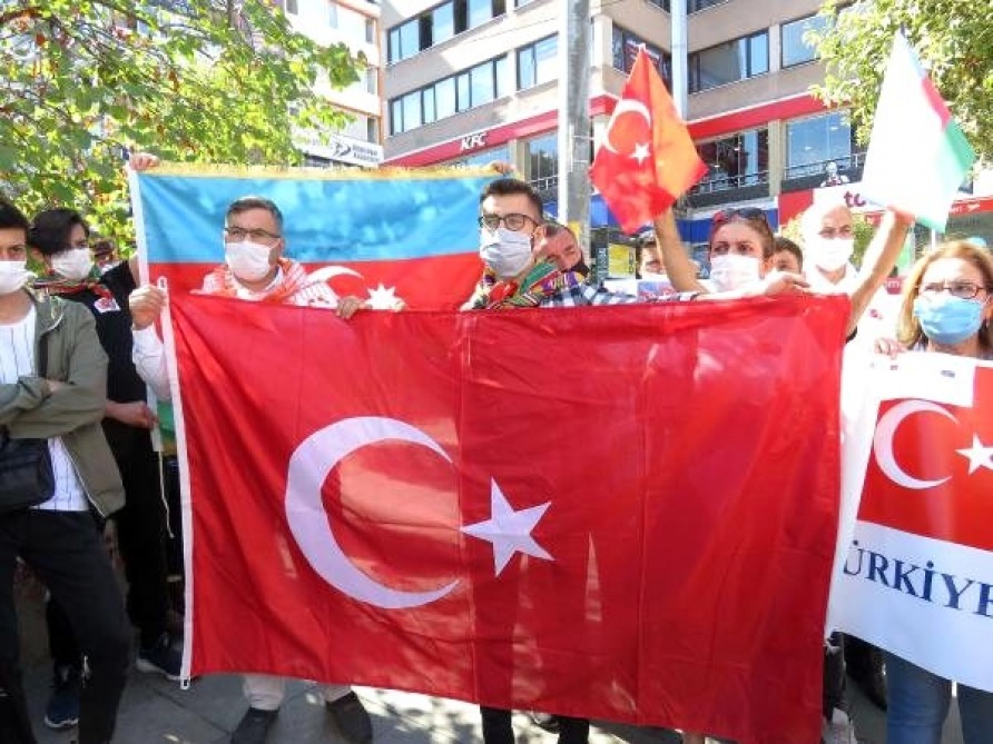 Azərbaycan və Türkiyə bayraqlarının dalğalandığı tədbirdə ölkəmizə dəstək şüarları səsləndirilib.