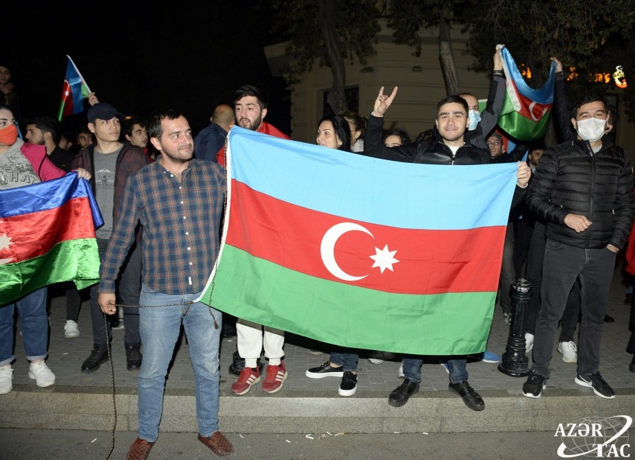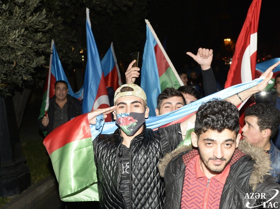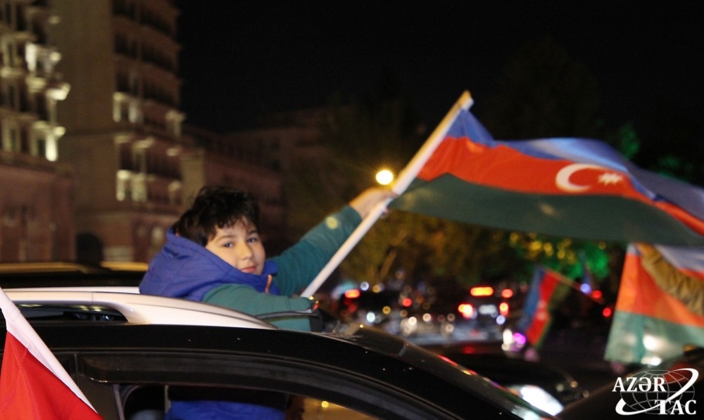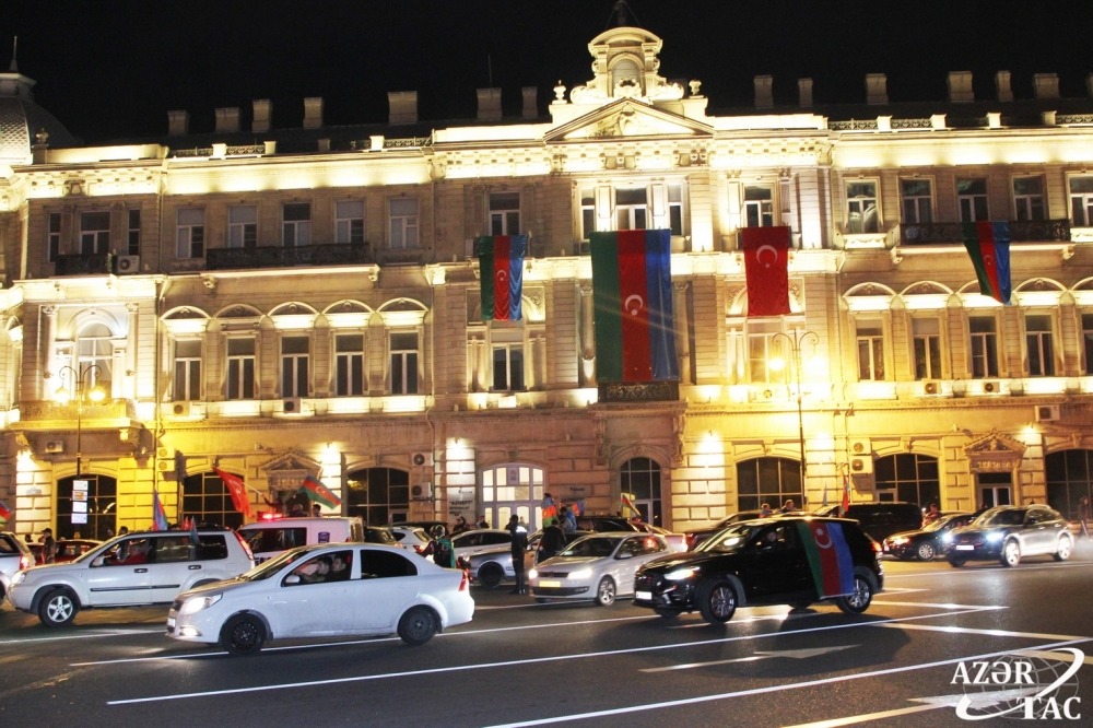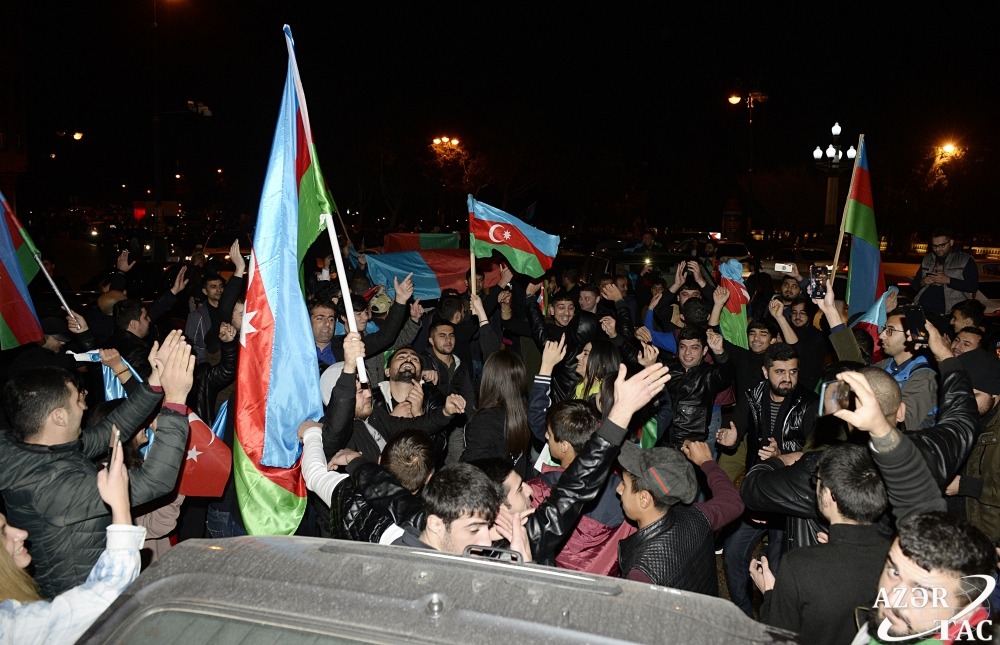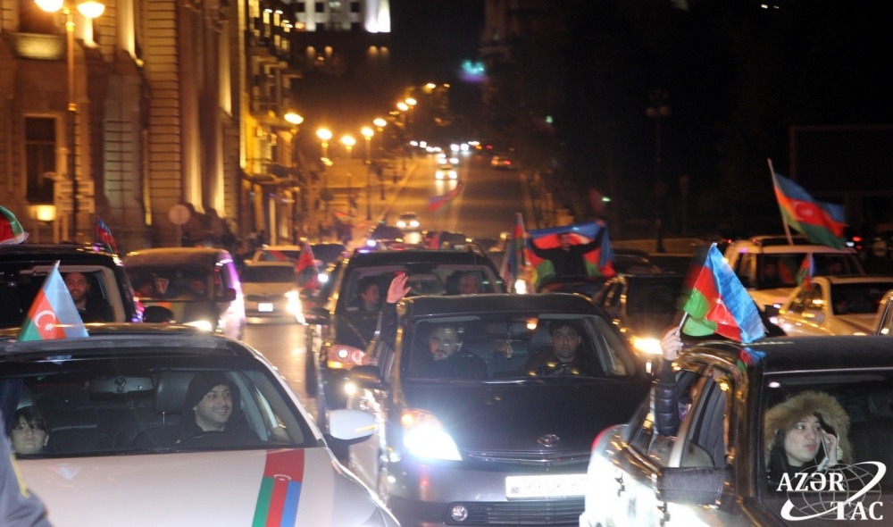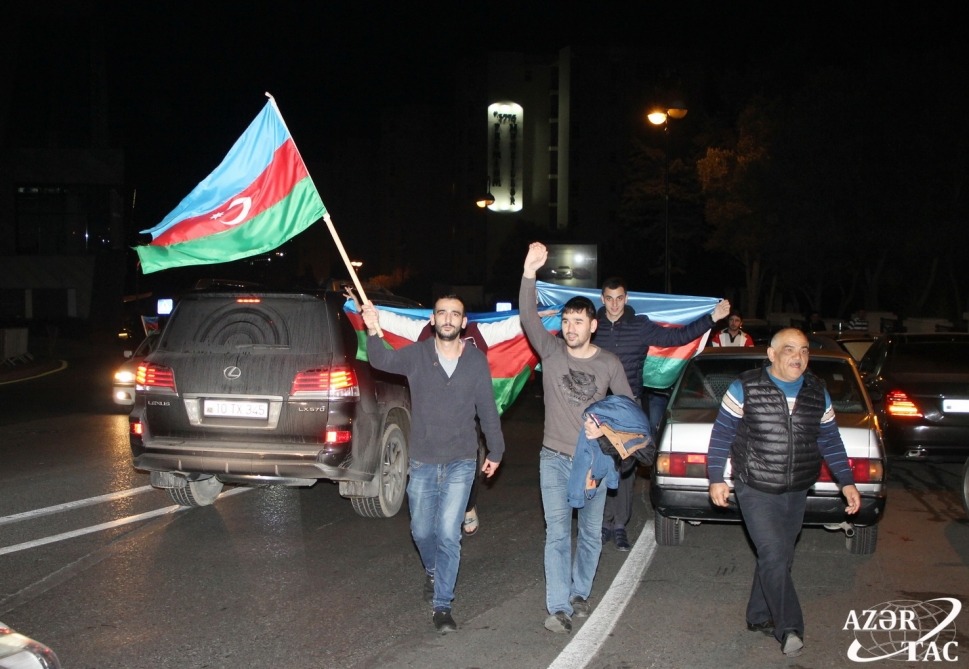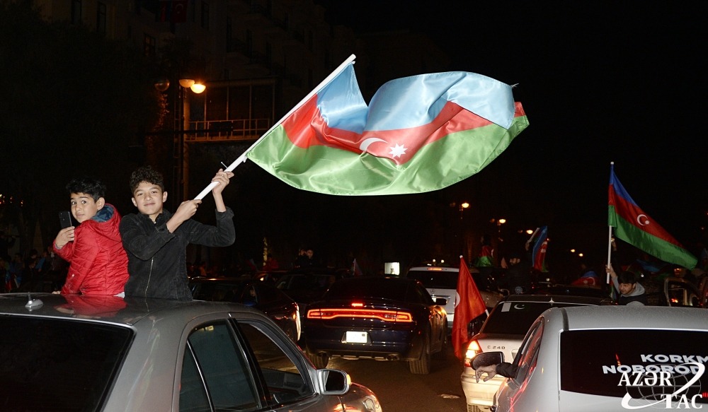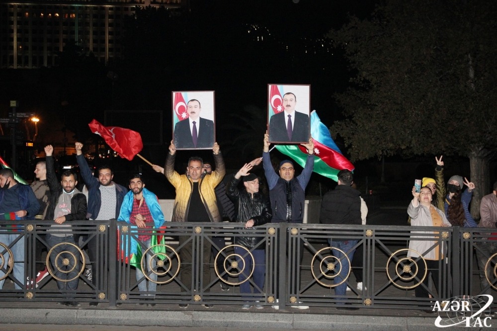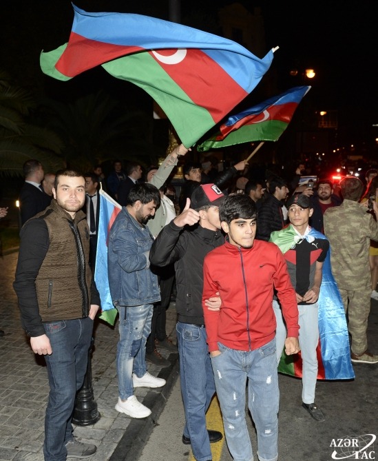 Ümumxalq şənliyi hazırda da böyük coşqu ilə davam etməkdədir. Əllərində ay-ulduzlu bayraqlar dalğalandıran, Müzəffər Ali Baş Komandanımızın portretlərini tutan yüz minlərlə Bakı sakini Rəşadətli Ordumuza, Qalib Əsgərimizə minnətdarlıqlarını ifadə edirlər.