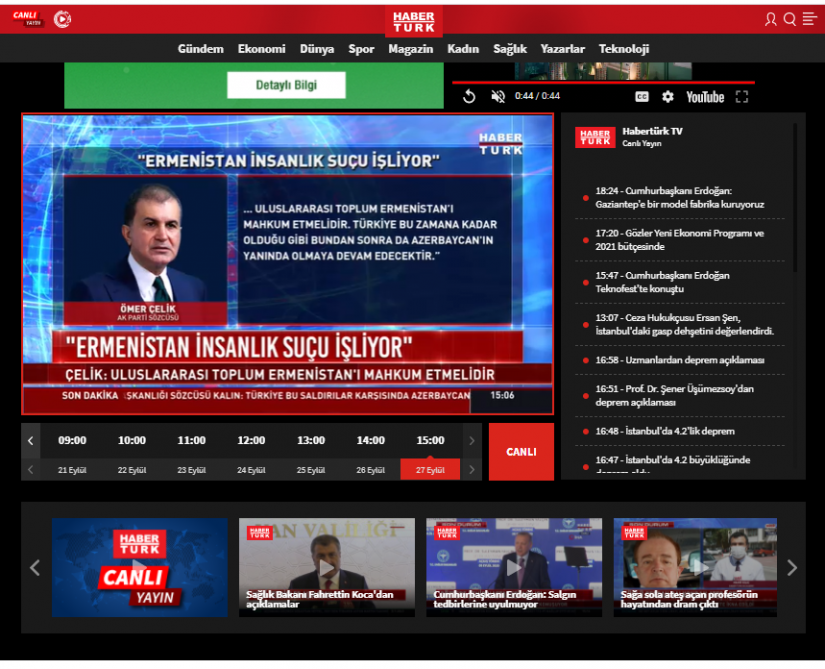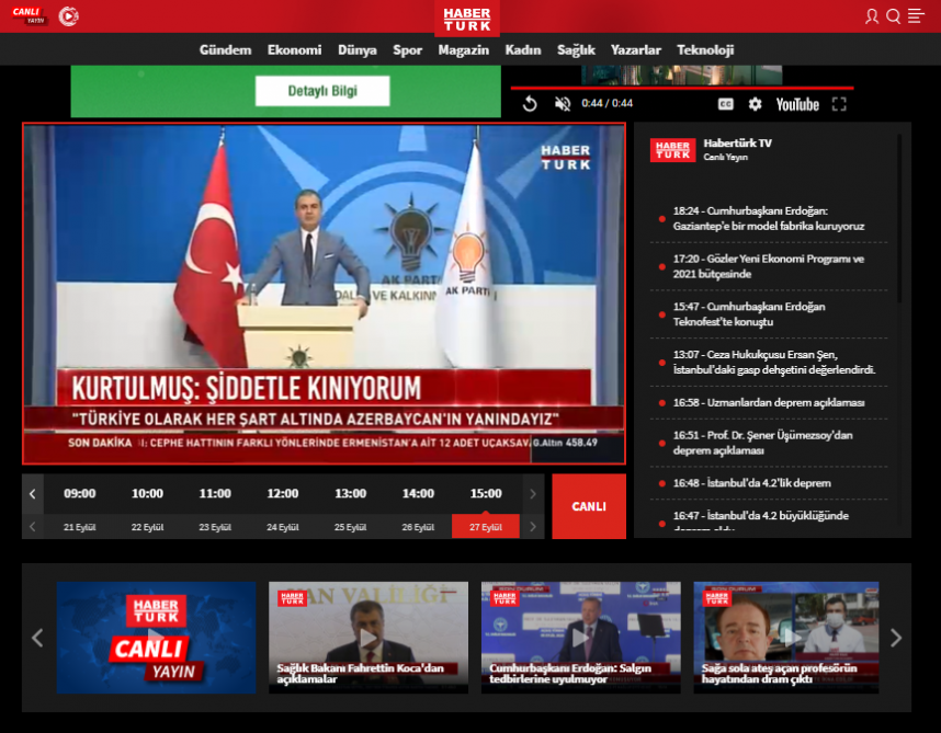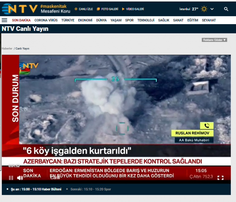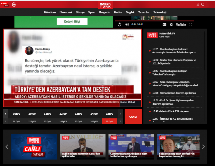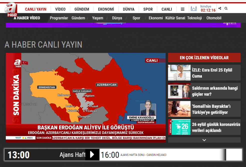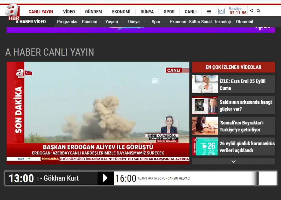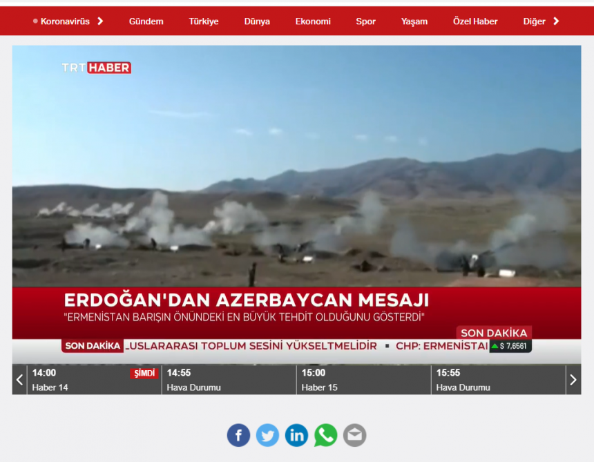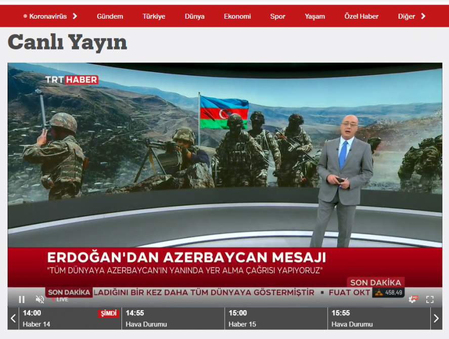 Ermənistan silahlı qüvvələrinin sentyabrın 27-də davamlı olaraq həyata keçirdiyi növbəti hərbi təxribatlar səbəbindən bölgədə yaranmış hərbi qarşıdurma Türkiyənin aparıcı kütləvi informasiya vasitələri tərəfindən fasiləsiz olaraq işıqlandırılmaqdadır.