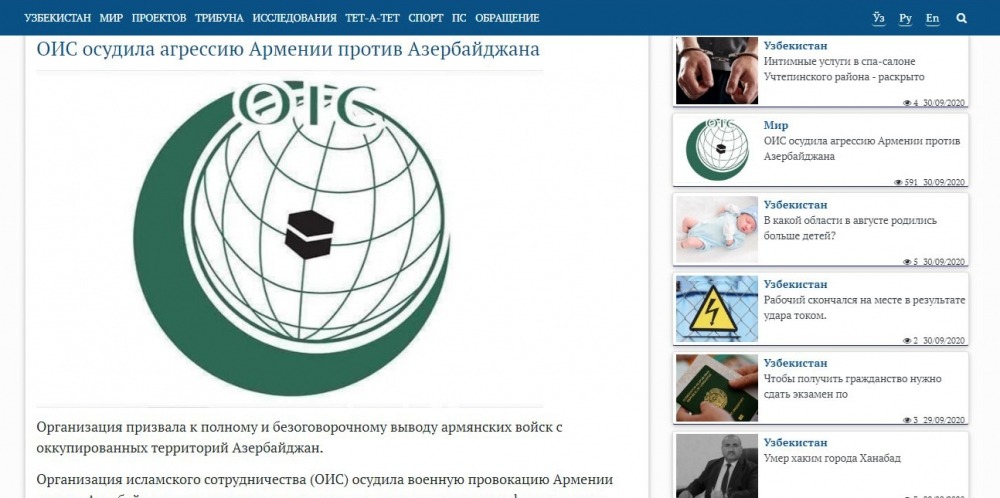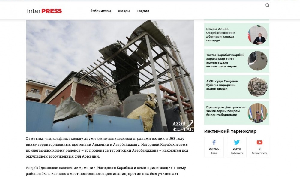 Özbəkistanın “human.uz” və “interpress.uz” portallarında Ermənistanın Azərbaycana qarşı təxribatları barədə rus dilində məqalələr dərc olunub.