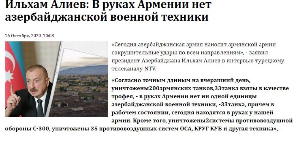 Report.ge, 24news.ge, pia.ge, news.ge, aktual.ge və daha bir neçə sayt Azərbaycan Prezidentinin Ermənistanın işğalçılıq siyasəti, region ölkələri üçün yaratdığı təhlükələr, Azərbaycan Ordusunun əks-hücum əməliyyatlarının uğurlu nəticələri barədə fikirlərini yayıblar.