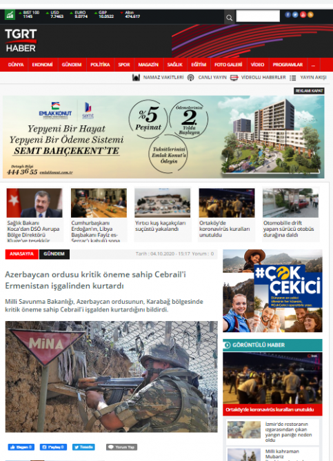 Məlumatlarla Anadolu Agentliyi, TRT HABER, HABER TÜRK, TGRT, A HABER, BENGÜ TV telekanallarının, habelə “Akşam”, “Təqvim” və s. nüfuzlu qəzetlərin saytlarında tanış olmaq mümkündür.