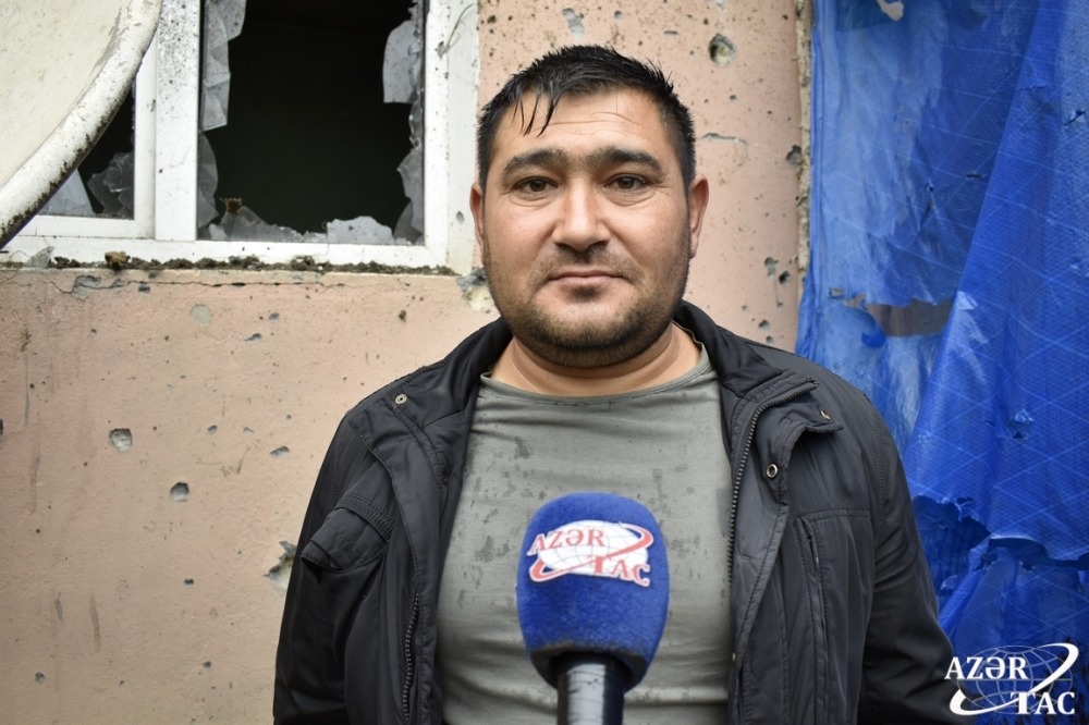 Digər məcburi köçkün Ramin Paşayev: "Qəsəbəmizin atəşə tutulmasına, dağıntılara baxmayaraq biz buranı tərk etməmişik. Ailəmlə birgə evimizdəyik. Düşmən bilsin ki, yaşayış məntəqələrini atəşə tutmaqla heç nəyə nail ola bilməyəcək. Qələbə bizimlədir. İnşallah zəfərimizi Şuşada qeyd edəcəyik".