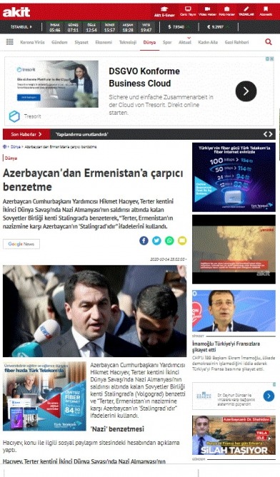 Türkiyənin kütləvi informasiya vasitələri (KİV) Azərbaycan Prezidentinin köməkçisi - Prezident Administrasiyasının Xarici siyasət məsələləri şöbəsinin müdiri Hikmət Hacıyevin Ermənistanın Gəncə şəhərinə növbəti raket hücumları ilə bağlı açıqlamasını geniş şəkildə işıqlandırıb.
