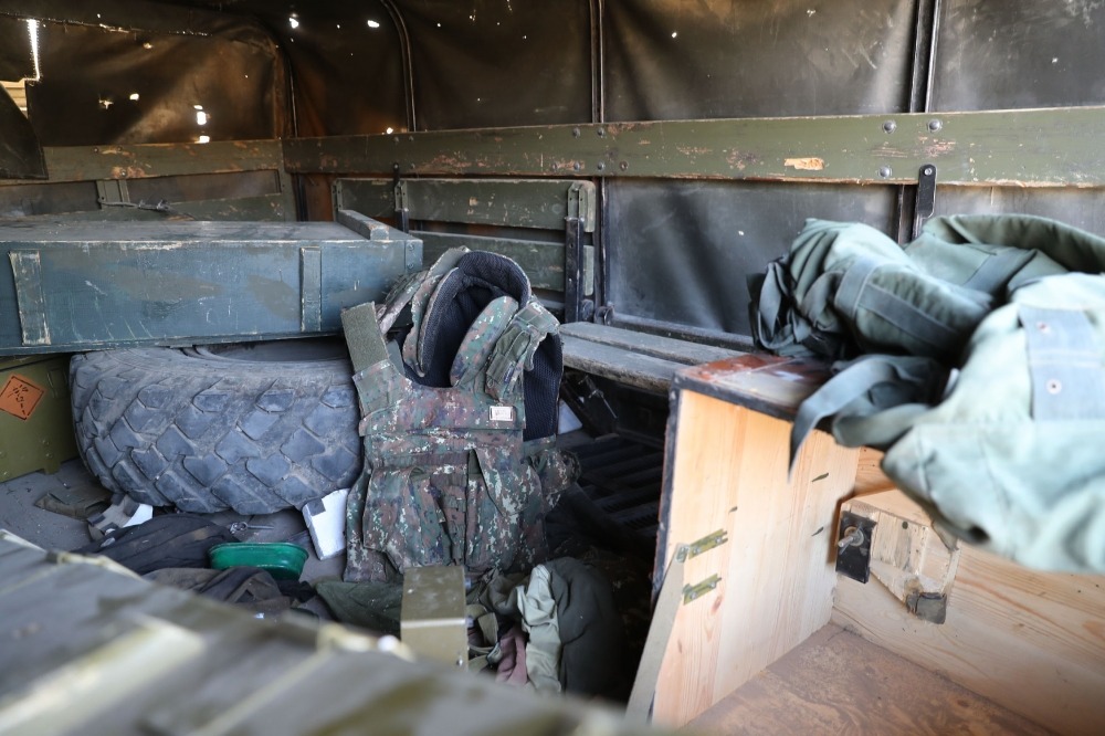 As a result of the successful operation of our servicemen, several more military equipment of the enemy - 4 "KAMAZ" and 1 "GAZ" brand cars were seized as loot. Clothes belonging to Armenian soldiers, various supplies, communications and other important military equipment were found inside the cars. All my military equipment is in working condition.
