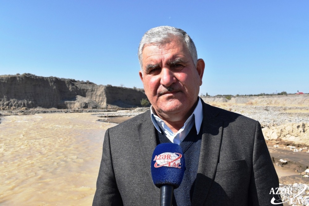 Mehman Karimov, Chief Engineer of Tartar District Branch of Azerbaijan Amelioration and Water Management OJSC, said the total volume of the Sugovushan reservoir, located on the Tartarchay River in the territory of Sugovushan village of Tartar district, is 5.86 million cubic meters. The water entering from the Tartarchay and Turagaychay rivers was regulated in the reservoir and fed to the main canal with a total subflow capacity of 70 cubic meters per second, and after 5.2 kilometers of the canal, to the Right Bank and Left Bank main canals, each with a subflow capacity of 50 and 20 cubic meters per second. Since the Sugovushan reservoir was under occupation for 28 years, there were serious difficulties in providing water to a total of 96,217 hectares of land in Tartar, Goranboy, Yevlakh, Barda, Aghdam and Aghjabadi districts. After the liberation of Sugovushan by the Azerbaijani Army, water was released from the Sugovushan reservoir. Currently, as a result of the regulation of water released from the reservoir, there is plenty of water in the Tartarchay River, as well as in canals and ditches.