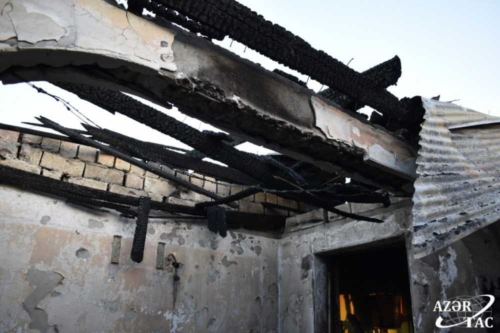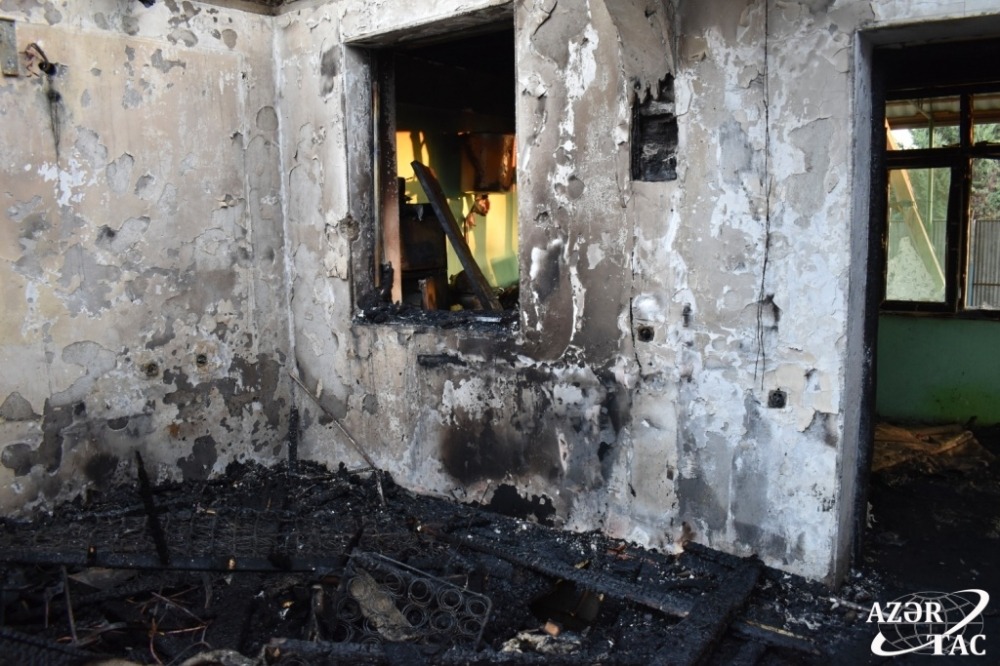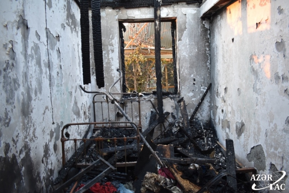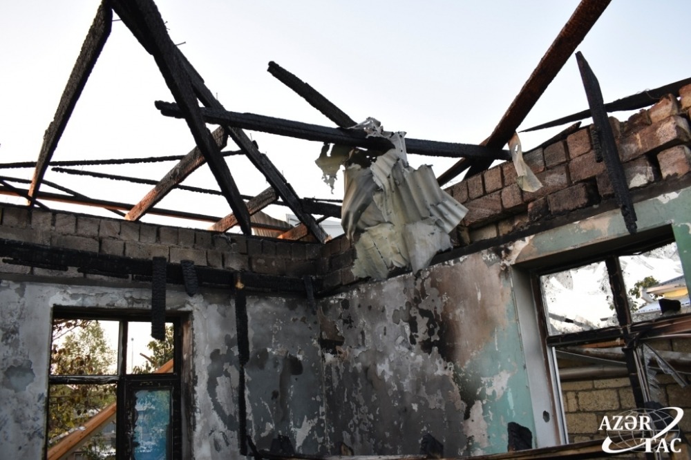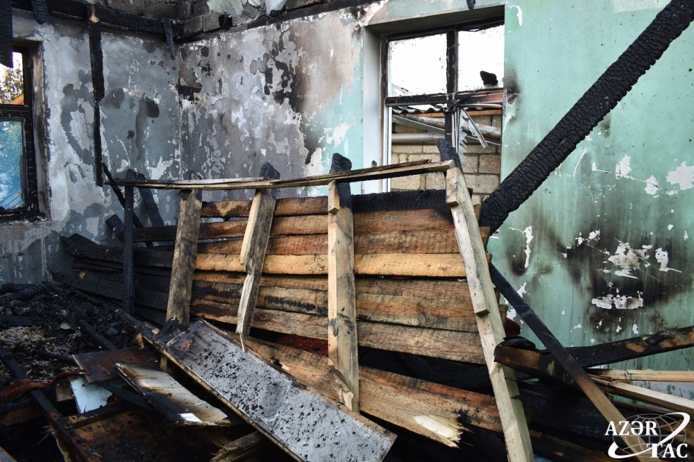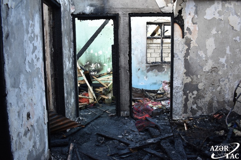 The house owned by Mahammad Valiyev, an IDP from Gulluja village, burned down along with his belongings as a result of a projectile explosion.