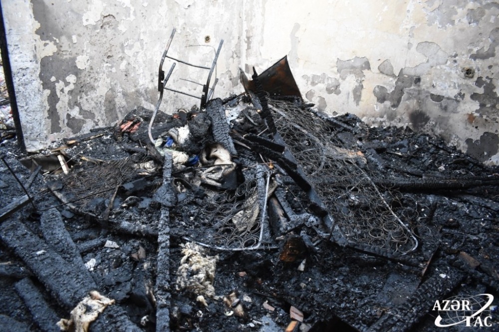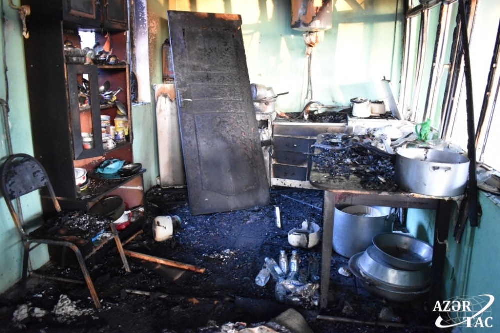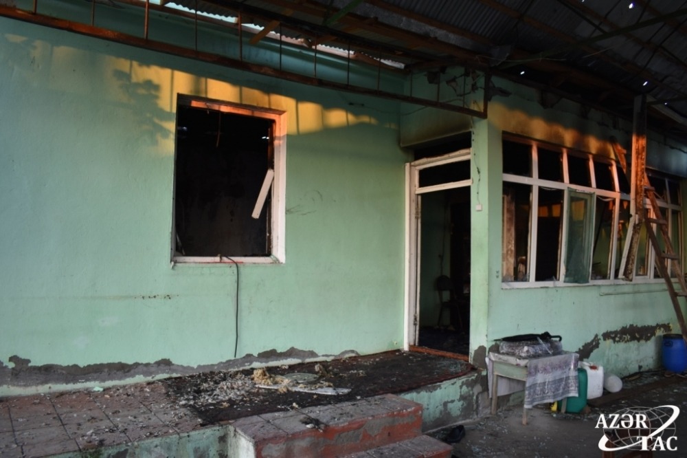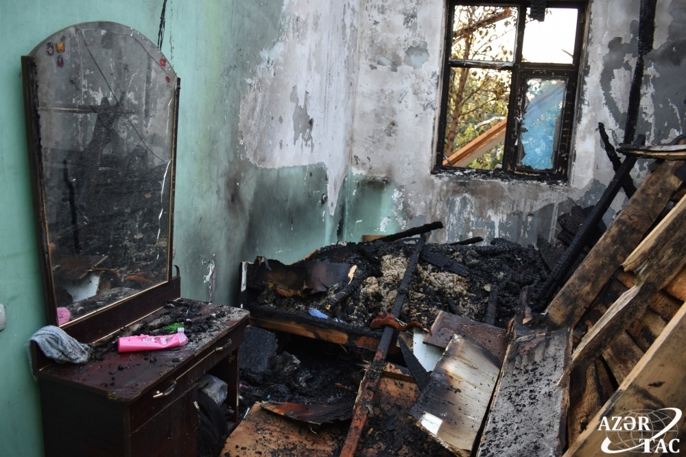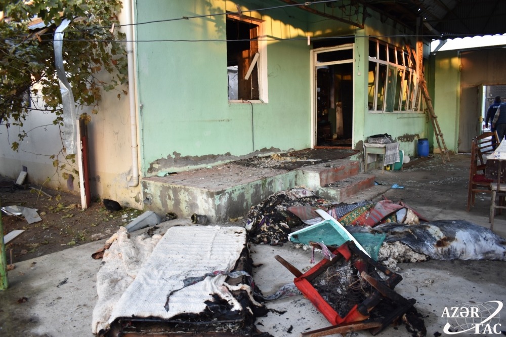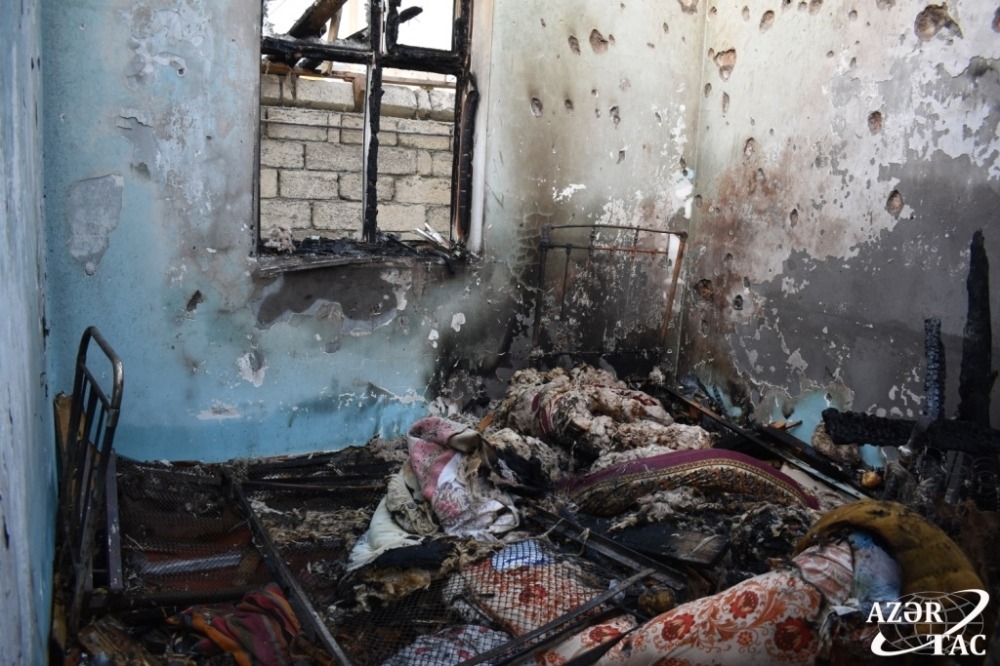 The house owned by Mahammad Valiyev, an IDP from Gulluja village, burned down along with his belongings as a result of a projectile explosion.