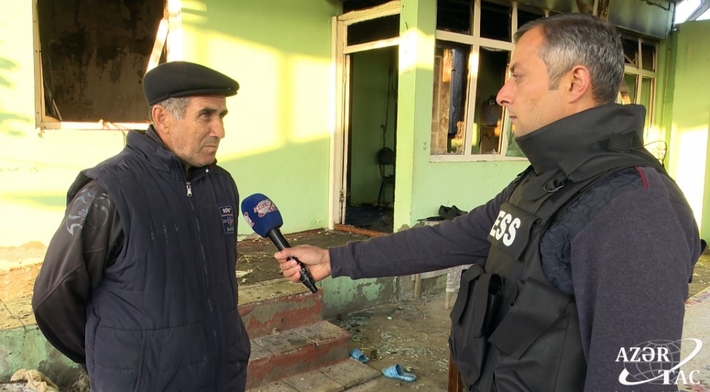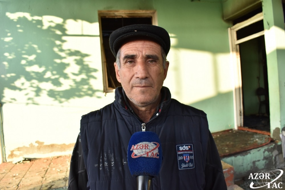 Mahammad Valiyev recalled the horror of the Armenian shelling: “We were in the yard. The seventh shell fired hit our house, causing a fire. We could not get anything out. All the things burned down. But we don’t regret it, everything will be good. This house was built at the expense of our state. The destroyed houses will be rebuilt. May our soldiers live long, may our lands be liberated from occupation!”