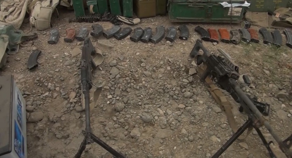 The footage shows the seizure of weapons and ammunition belonging to the enemy army by the servicemen of the Azerbaijan Armed Forces. It can be seen from the footage that the enemy fled, leaving a large number of equipment and ammunition in the battle positions.