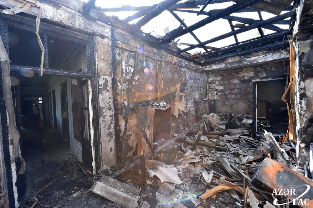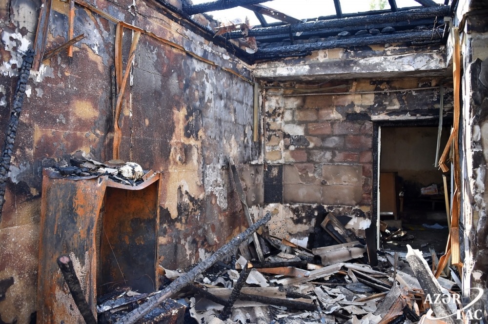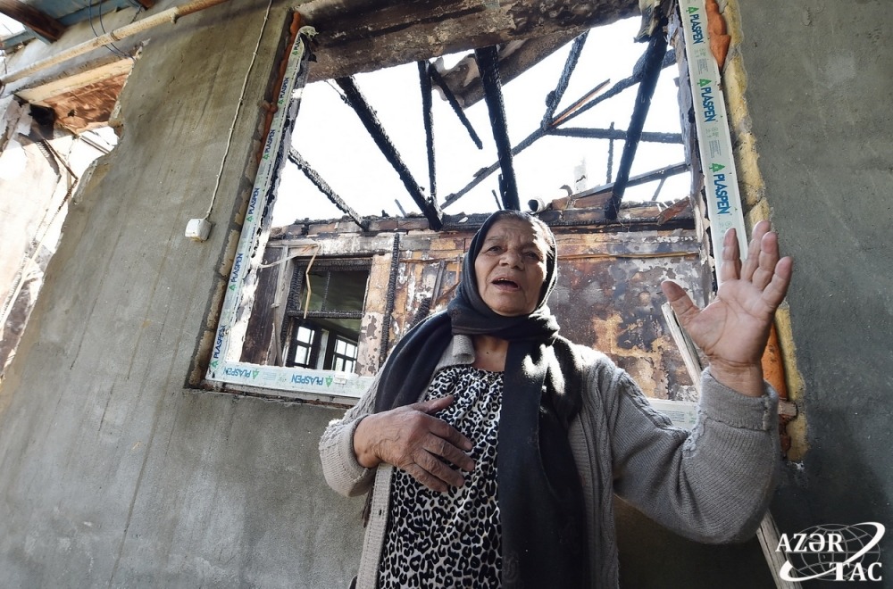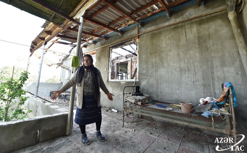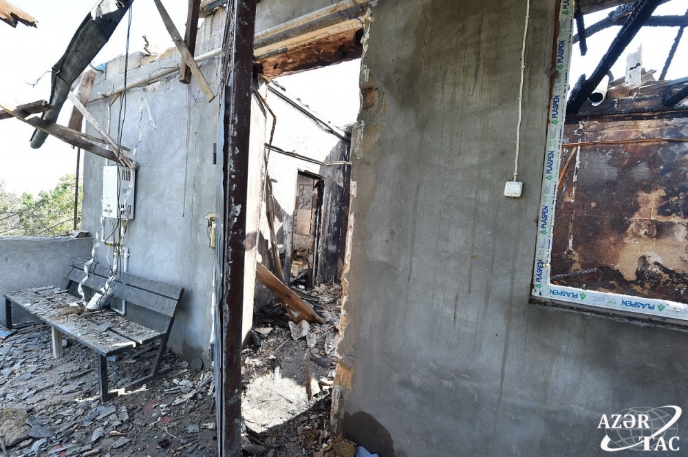 As a result of the enemy’s heavy artillery fire last night, one of the shells hit Gashalti Garagoyunlu village of Naftalan city, destroying the house owned by villager Samaya Babayeva. Then a fire broke out. The neighboring house was partially damaged.
