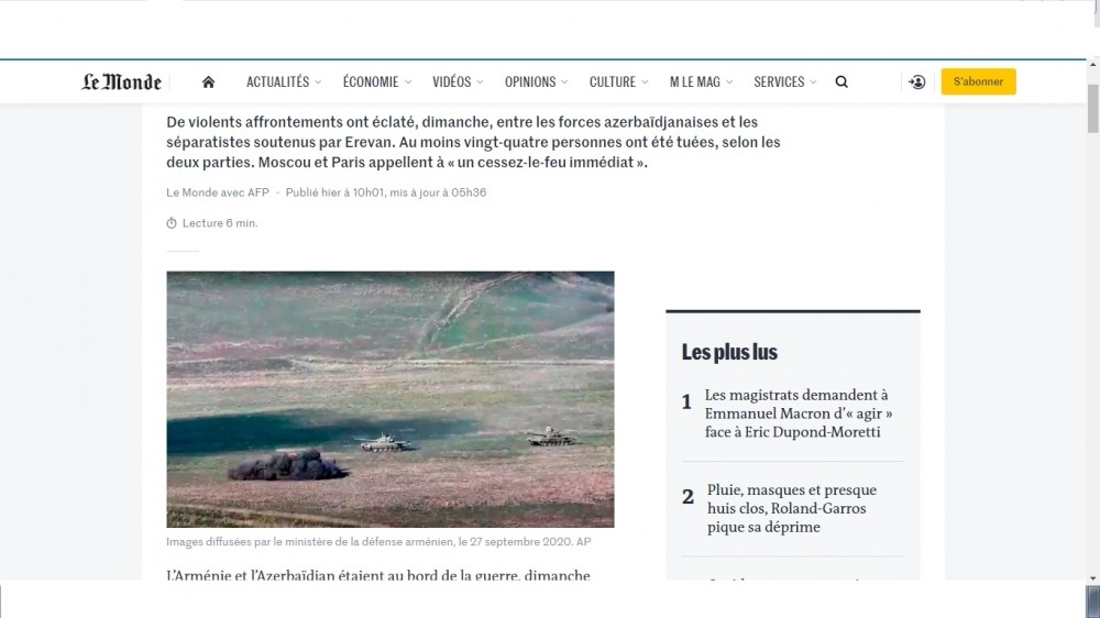 The ongoing battles in Nagorno-Karabakh are in the spotlight of Le Monde, Le Figaro, La liberation, Le Point portals, France culture radio, Franceinfo and M6 TV channels.