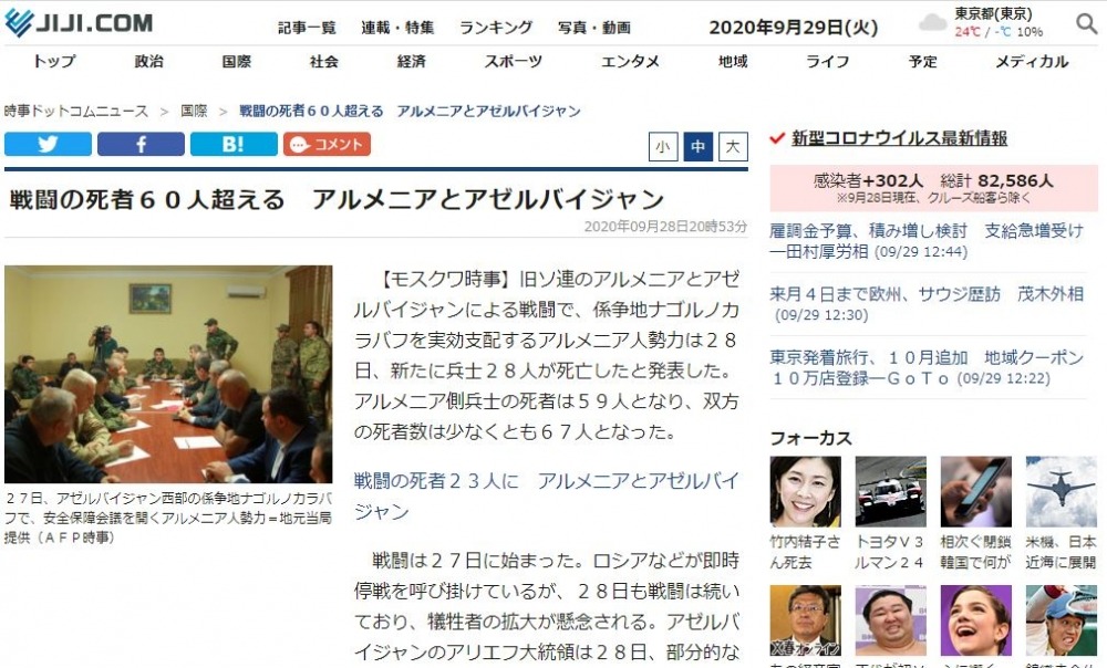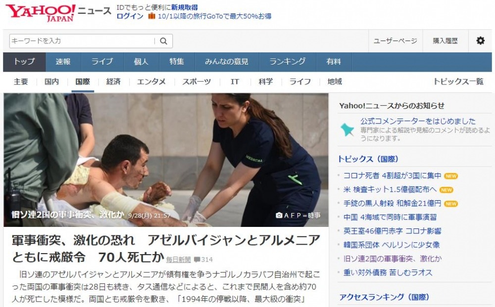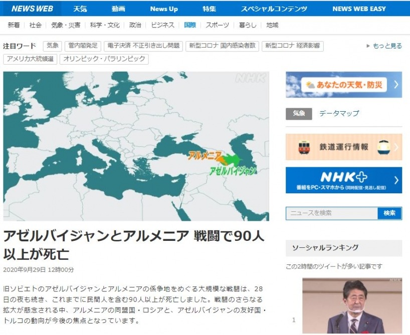 Japan’s NHK, BS1, Asahi TV channels, Yomiuri Shimbun, Nihon Shimbun, Jiji Press, Yahoo Japan, and several others media outlets covered the ongoing hostilities between Armenia and Azerbaijan.
