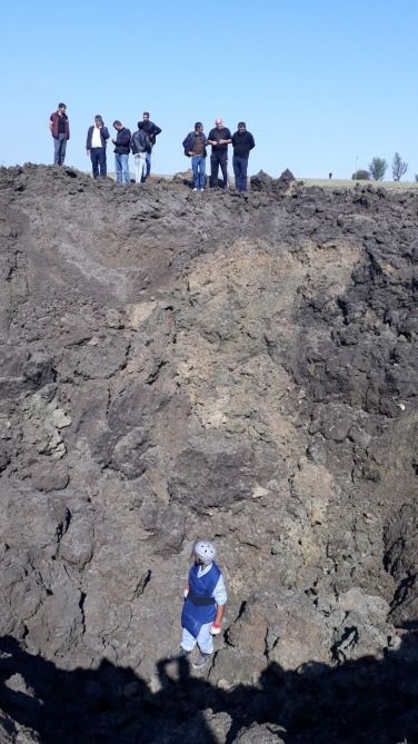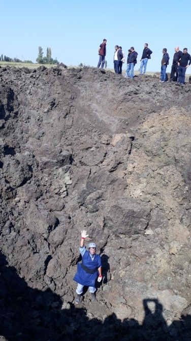 The missile fired by Armenian troops at Gasimbayli village in Barda district left a 10-meter-deep crater. Also, parts of the land were spread over a wide area due to the impact of the rocket.