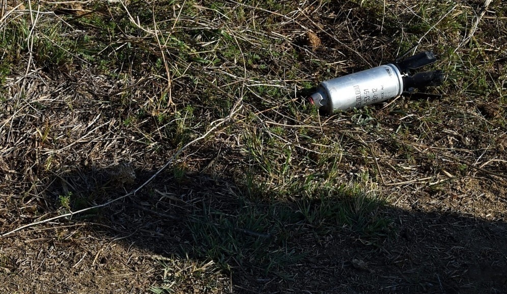 A bomblet belonging to a cluster-warhead missile was discovered among a large number of shells and missiles fired by the Armenian army in the region. The bomblet was fired from a cluster-warhead version of the 300-millimetre 9M55KA Smerch missile. It targeted the civilian population, as it was discovered in a residential area. These are prohibited bombs. All cluster bombs and bomblet missiles are prohibited by international conventions. These were 9N235 fragmentation bomblets. It contains 96 fragments to destroy light armoured vehicles and equipment and 360 to destroy manpower. The missile weighs 800 kilograms. The bomblets were neutralized through detonation on 9 October.